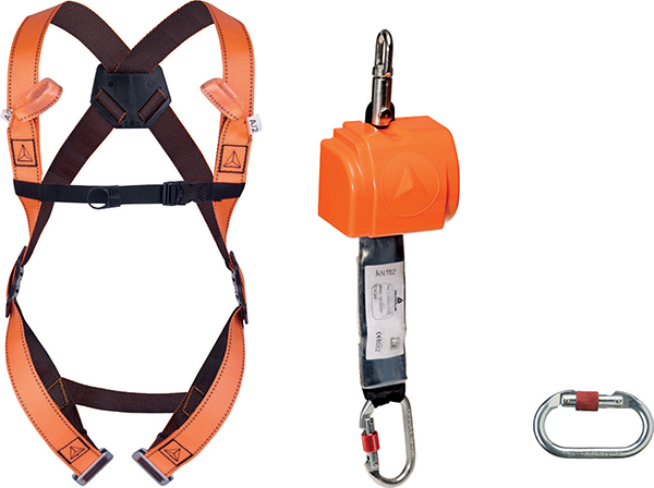 - imbracatura a 2 punti di ancoraggio anticaduta, cinghie in nastro di poliestere, 2 fibbie e 2 placche laterali di regolazione, testata a 140 kg, cinghia toracica con regolazione rapida, anello a D per ancoraggio dorsale, ancoraggio sternale con asole in poliestere