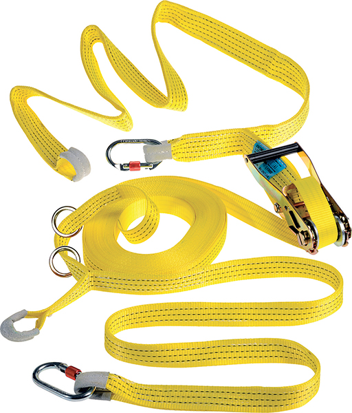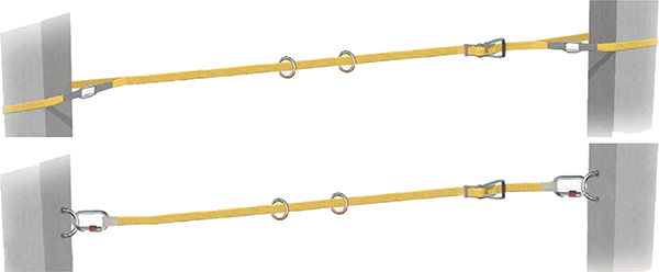 Linea di vita temporanea (mod. LV201) a campata unica, certificata per 2 persone, tensionabile e bloccabile tramite tenditore a cricchetto con sicurezza d'arresto. Kit fornito con: cinghia principale con tenditore a cricchetto da 18 m con 2 cinghie terminali complete di moschettone in acciaio a vite e asola cucita, 2 anelli scorrevoli per ancoraggio dispositivo anticaduta, borsa. Possibilità di aggancio a punti di ancoraggio esistenti o a cappio attorno a strutture portanti.