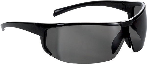 Occhiali di protezione mod. Polaris con lente grigia antigraffio in policarbonato, trattamento antiappannamento, protezione contro l'abbagliamento, protezione UV400, montatura di colore nero, astine avvolgenti antiscivolo, in materiale bicomponente. Conforme alle norme EN 166 - EN 172 - EN ISO 16321.