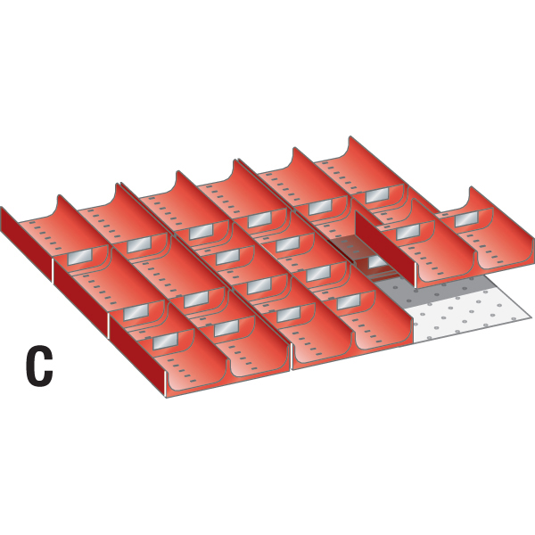 | Codice | € | Altezza frontale cassetto mm | Fig. | Diametro conche mm | N° moduli | N° conche per modulo | N° separatori |