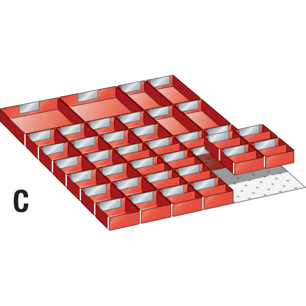| Codice | € | Altezza frontale cassetto mm | Fig. | N° totale vaschette | Vaschette n° / misura mm | Vaschette n° / misura mm | Vaschette n° / misura mm | Vaschette n° / misura mm |
