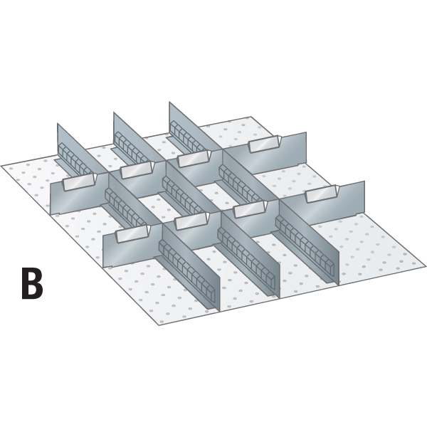 | Codice | € | Altezza frontale cassetto mm | Fig. | N° pareti fessurate | N° pareti lisce | Lamine divisorie n° / misura mm | Lamine divisorie n° / misura mm |