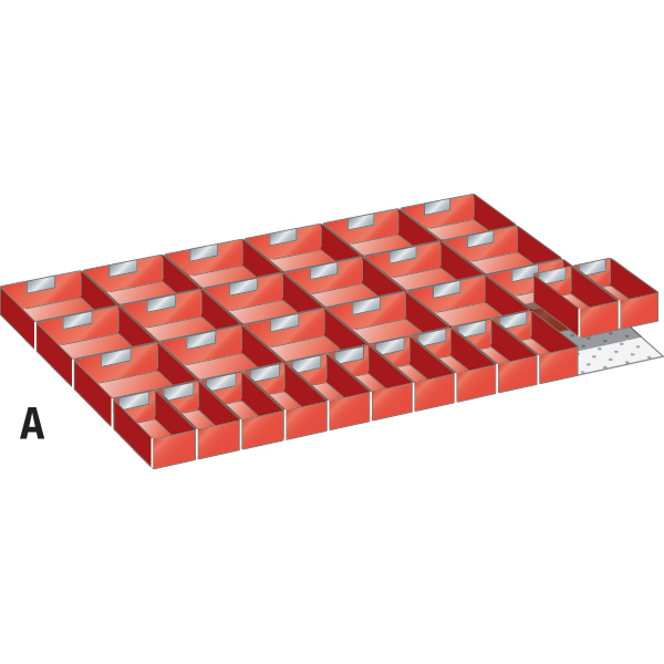 | Codice | € | Altezza frontale cassetto mm | Fig. | N° totale vaschette | Vaschette n° / misura mm | Vaschette n° / misura mm | Vaschette n° / misura mm |