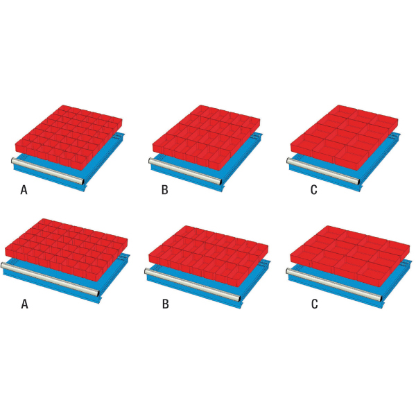 | Codice | € | Altezza frontale cassetto mm | Fig. | N° totale vaschette | Vaschette misura mm |