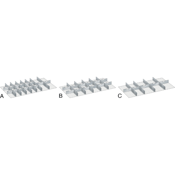 | Codice | € | Altezza frontale cassetto mm | Fig. | N° pareti fessurate | Lamine divisorie (n° / misura mm) | Lamine divisorie (n° / misura mm) |