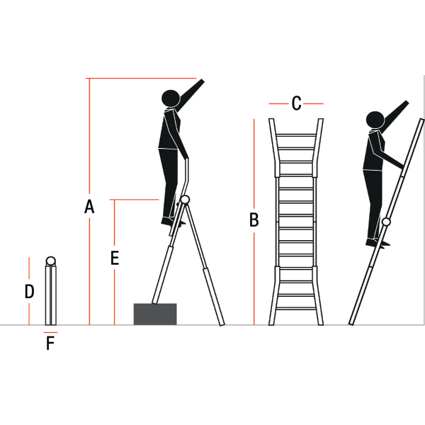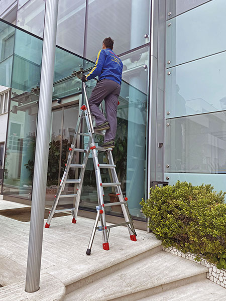Scala telescopica professionale in alluminio, montanti esterni rinforzati con apposite staffe per garantire maggiore resistenza nella zona di sovrapposizione della scala, bracciolo (optional) con gradino da 150 mm per aumentare l'altezza di lavoro in sicurezza di 600 mm e agganciabile anche a qualsiasi altro gradino in posizione intermedia, cerniera programmabile in 3 modalità di funzionamento, maniglie ergonomiche di sicurezza per gancio/sgancio e allungo della scala, traverse di rinforzo alla base per evitare il ripiegamento dei montanti se caricati da spinte laterali, portata massima 150 Kg (100 Kg per il modello a 12 +12 gradini). Qualora si debba utilizzare la scala estesa in appoggio per altezze superiori a 3 m è obbligatorio utilizzarla applicando gli stabilizzatori richiudibili da acquistare separatamente. Fornita con certificato con numero di matricola e corrispondente targhetta identificativa del prodotto, in conformità alle normative europee EN 131.1, EN 131.2 e al D.Lgs. 81/08.