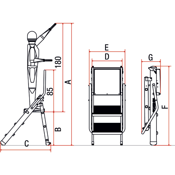 | Codice | € | N° gradini¹⁾ | A mm | B mm | C mm | D mm | E mm | F mm | G mm | Peso Kg |