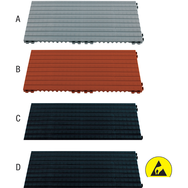 Tappeto antisdrucciolo modulare in polietilene a bassa densità con portata statica di 5000 Kg/m2 per l'assemblaggio di pedane negli spazi di lavoro, disponibile con celle chiuse o forate, ottima adesione al pavimento sia con che senza carico, senza smussature per evitare gli inciampi, superfici con rilievi canalizzati per favorire la percorribilità in condizioni di umidità. Particolarmente adatto nelle officine meccaniche, nelle industrie per la lavorazione del metallo, negli impianti di lavaggio e nelle industrie alimentari. Ogni tappeto presenta degli agganci maschio/femmina opposti sui due lati per facilitare l'assemblaggio; per la completa sicurezza ed ergonomia le pedane vanno completate perimetralmente con le rampe di raccordo lineari e ad angolo, fissando definitivamente nella parte inferiore tutti gli elementi con le clip di aggancio zincate.