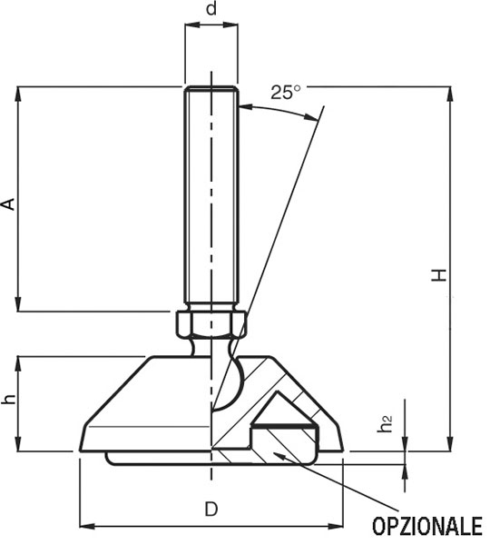 | Codice | € | D mm | H mm | h mm | d | A mm | Carico max Kg |