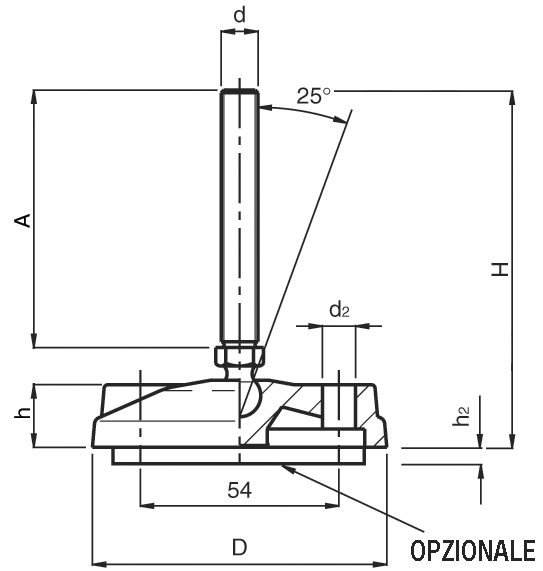| Codice | € | D mm | H mm | h mm | d | A mm | d? mm | Carico max Kg |