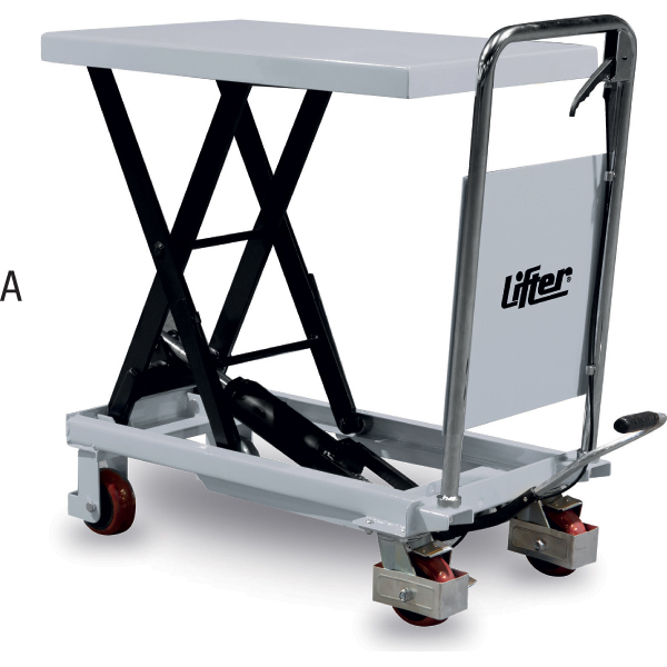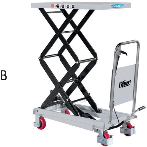 | Codice | € | Portata Kg | Tipo pantografo mm | Dimensione tavola LxP mm | Spessore tavola mm | Altezza maniglia mm | Altezza dal suolo min/max mm | Peso Kg | Fig. |