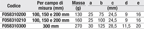 | Codice | € | Per campo di misura mm | Dimensioni mm |