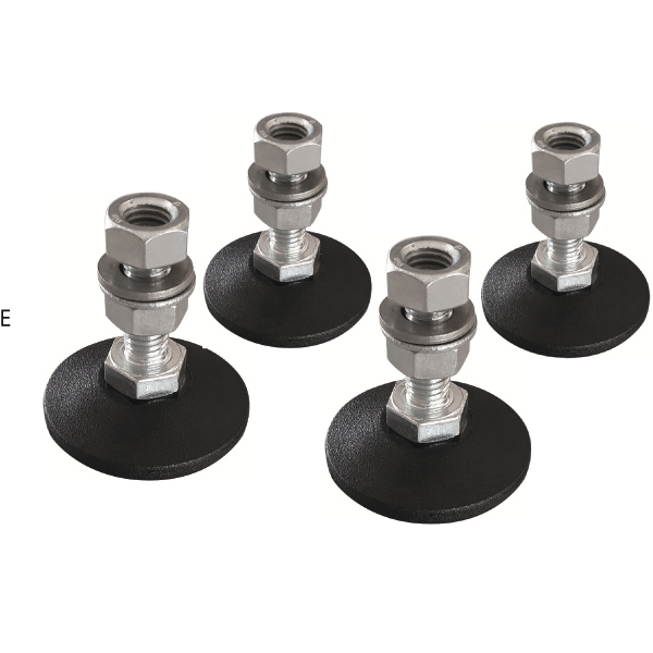 Set di 4 piedini regolabili da utilizzare con mobili fissi, armadio con anta e rialzi nel caso di necessità di regolare perfettamente le altezze ed eventuali dislivelli.
